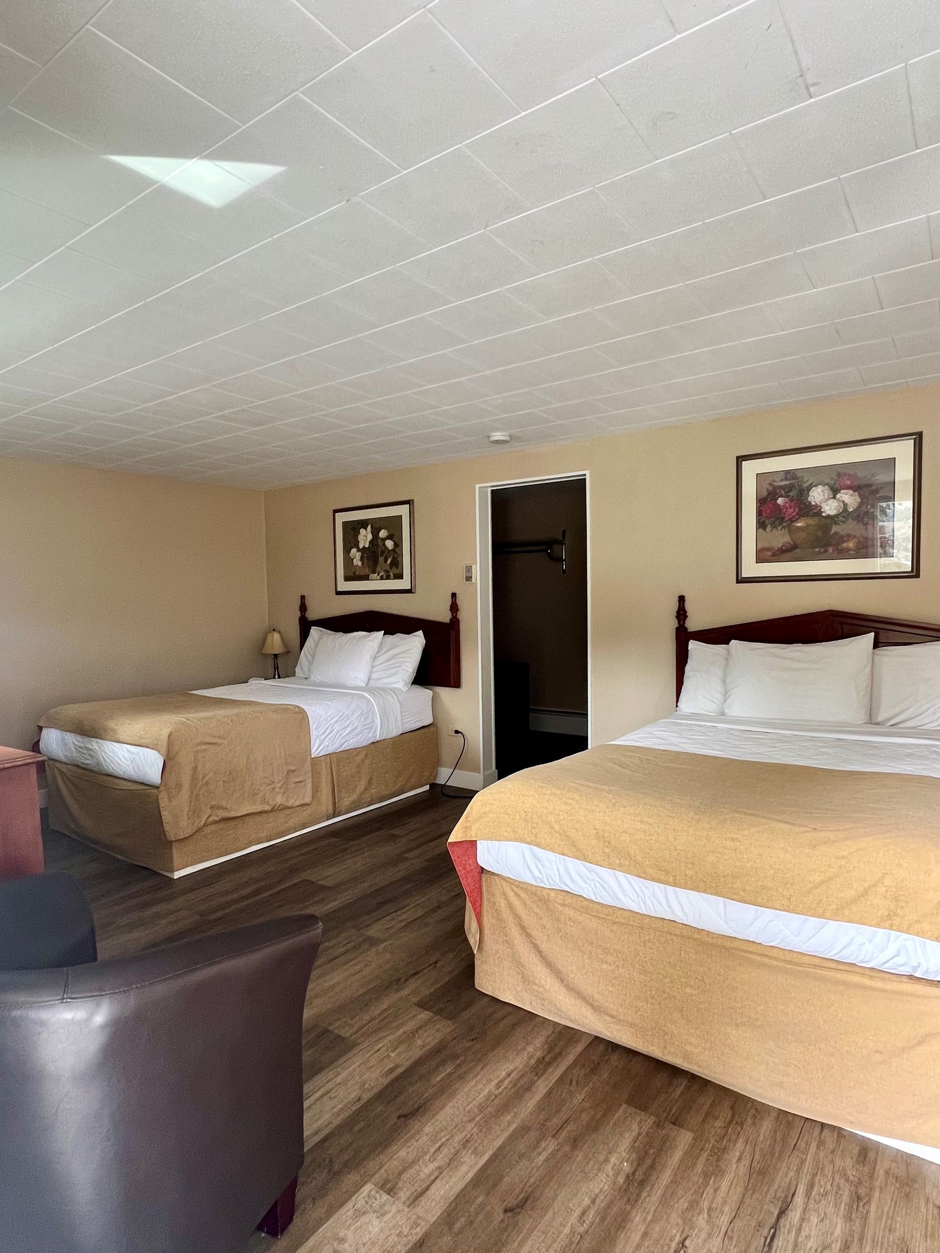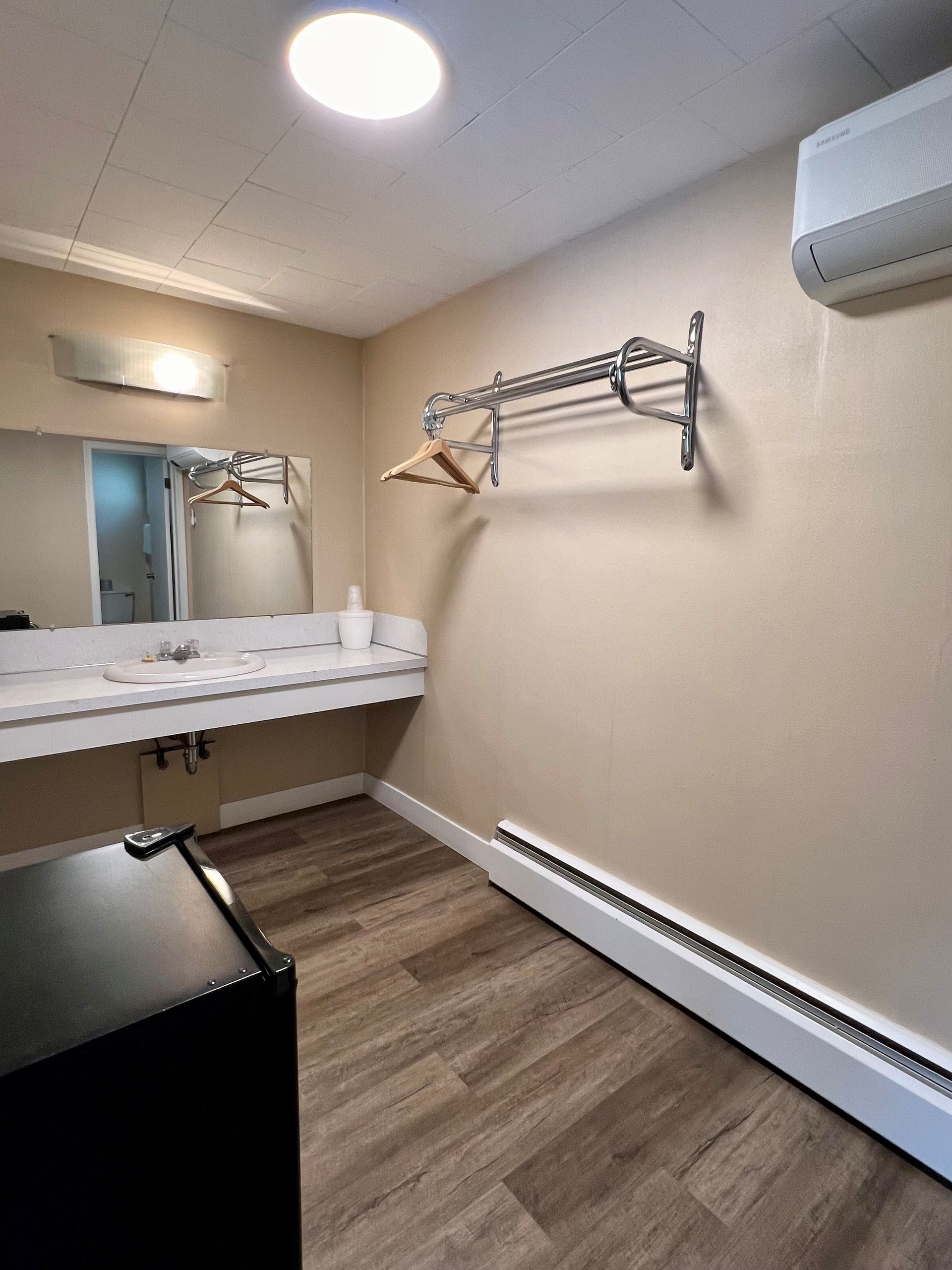 - Features: Flat screen TV, cable, coffee maker, mini fridge, air conditioning, telephone, desk, chair, private bath or stand up shower, and free toiletries.